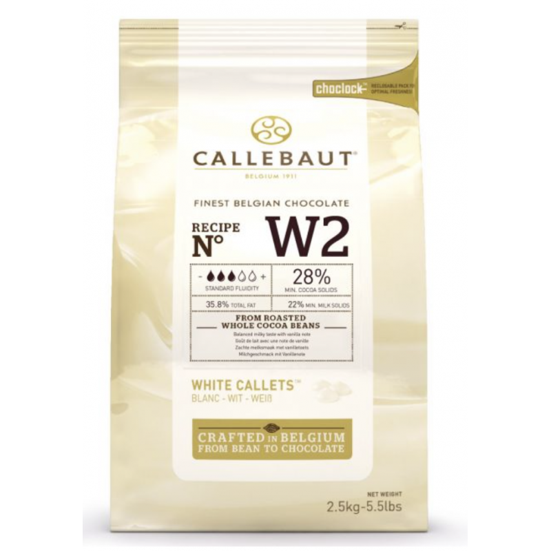 Die weißen Callebaut Callets enthalten 28 % Kakao und sind aus feinster belgischer Schokolade. Diese Callets sind zum Schmelzen und haben einen ausgewogenen, sahnigen Geschmack. Wunderbar geeignet zur Herstellung von Bonbons und Schokolade. Aber auch um z.B. Ihre Cupcakes oder Kuchen zu überziehen.