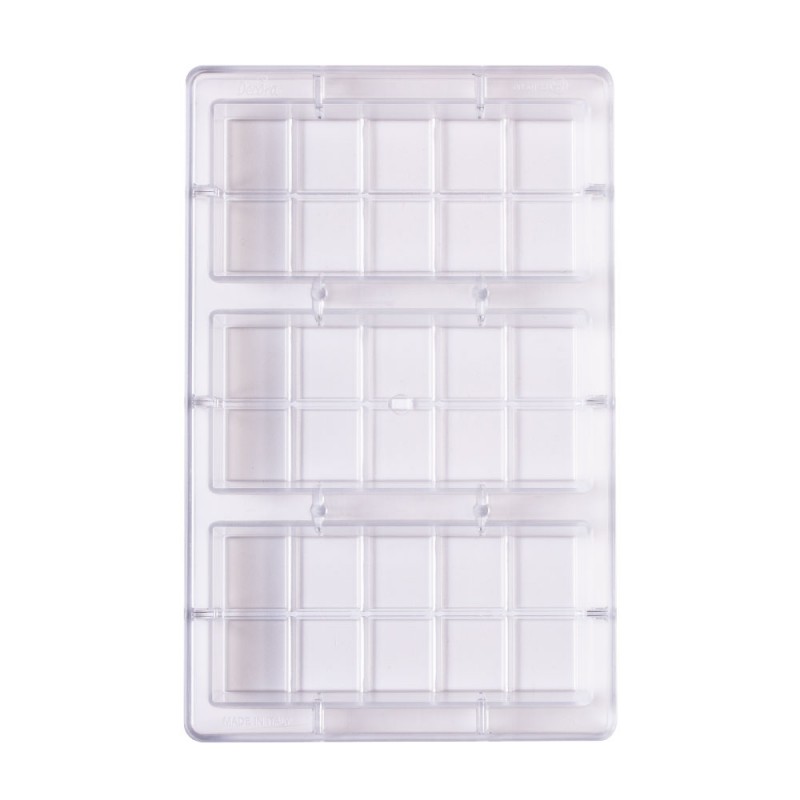 Professionelle Form aus Copolyester, einem Material, das glänzende und perfekte Pralinen hervorbringt. Hält Temperaturen zwischen -10 °C und +50 °C stand.