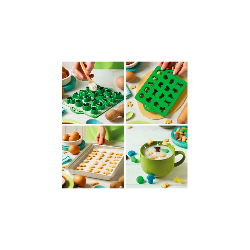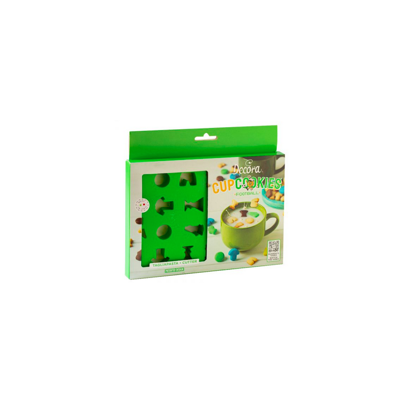 Eine Fußball-Ausstechplatte mit mehreren Formen und praktischen Seitengriffen – perfekt, um ein ganzes Team aus kleinen Keksen in Form von Bällen, Trikots, Schuhen oder Pokalen zu backen. Ideal zum Eintunken in heiße Schokolade – für ein süßes Frühstück am Spieltag oder zum großen Finale!