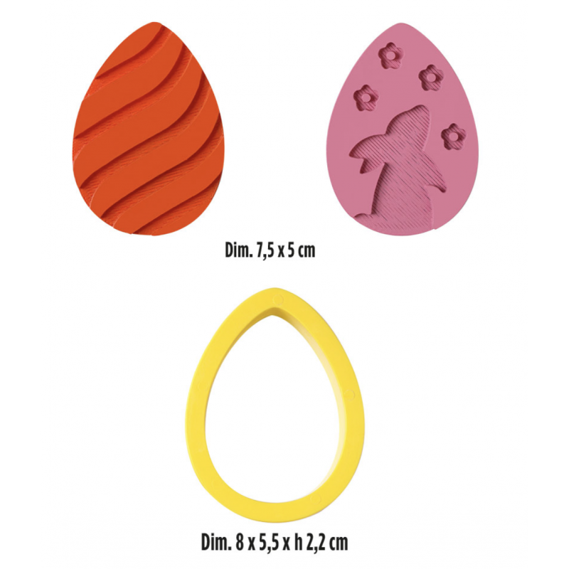 3-teiliges Set aus buntem Kunststoff in Form eines Ostereies.