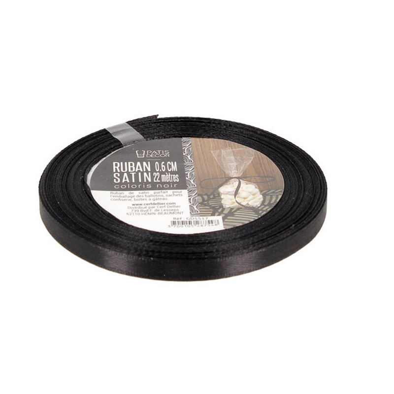 22-m-Rolle schwarzes Satinband, perfekt zum Verpacken und Präsentieren von Ballotins und Konfektbeuteln, Hochzeitsdekorationen, Tortenschachteln...