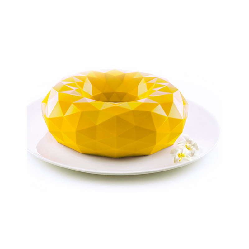 Die funkelnde Schönheit eines Edelsteines erstrahlt auf eurem Tisch dank GIOIA von Silikomart. Die facettierte Maserung, wie die eines Juwels, erobert euch auf den ersten Blick. Die Form Gioia der Serie 3Design von Silikomart verfügt über einen revolutionären inneren Rand, welcher dem Boden eurer Zubereitungen eine leichte Rundung verleiht. Gioia garantiert tadellose Ergebnisse, nicht nur bei Halbgefrorenem oder Mousse, sondern auch in gebackener Version.