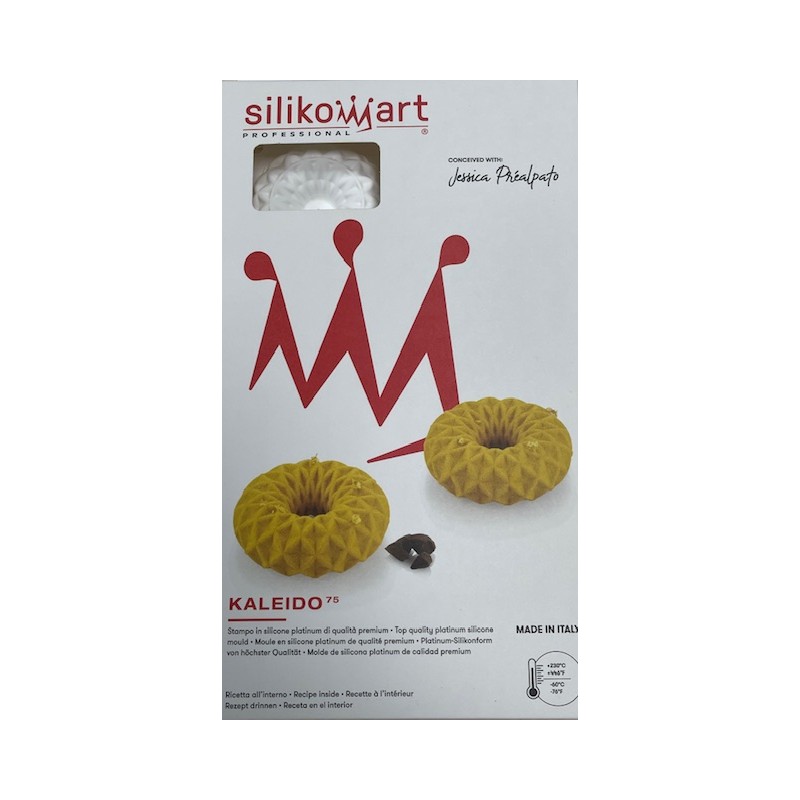 Kaleido 75 ist die ideale Einportionsform, um Ihrem Tisch einen eleganten, geometrischen Touch zu verleihen. Die Form besteht aus sechs Vertiefungen à 75 ml und ist ideal für Mousse und Parfaits. Entworfen mit Jessica Préalpato. ø75 h 25 mm / ø2.95 h 0.98''.