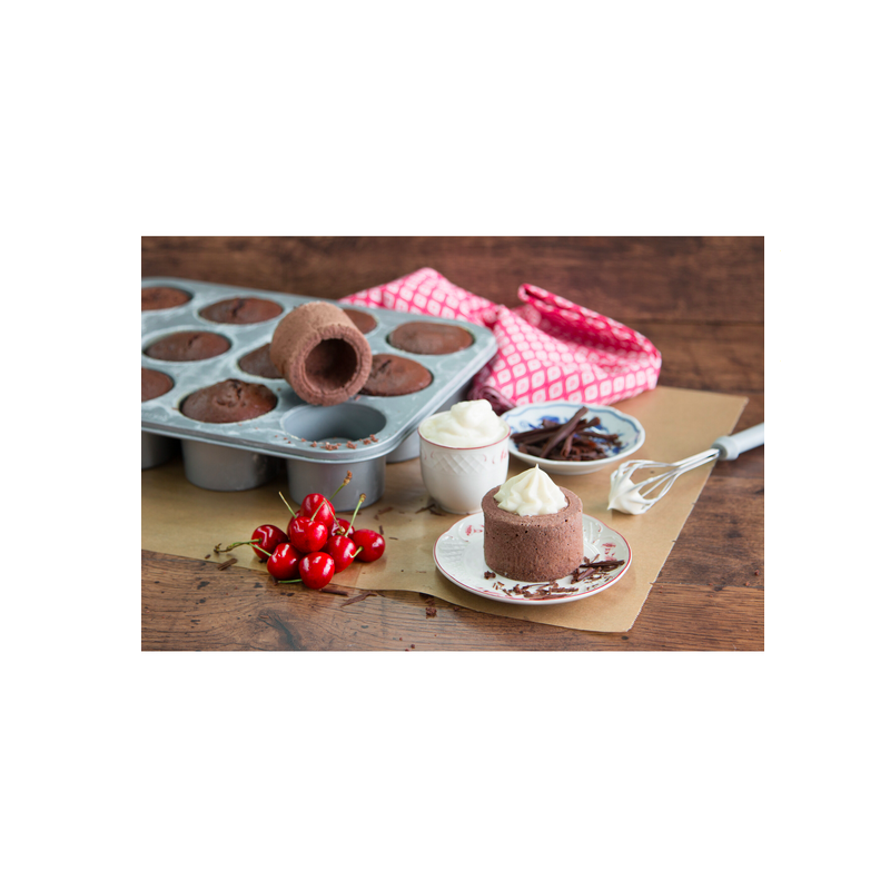 Die Backformen von "We love baking" sind in schickem Silber gehalten und machen das Backen zu etwas Besonderem. Sie haben eine sehr hochwertige und langlebige Antihaftbeschichtung, die gelungene Kuchen garantiert, die sich leicht aus der Form lösen lassen und für puren Backgenuss sorgen. Jede Backform bietet Platz für 12 Kuchen, jeweils mit einer Größe von ca. ø 7 cm / H 5 cm.