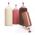 Geschmolzenen Zucker in die Flasche füllen, danach mithilfe der Flasche die Förmchen für Leckereien befüllen.