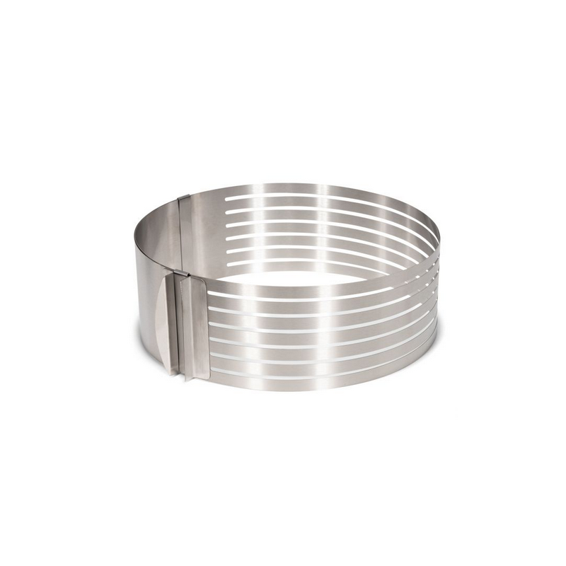 Mit dem verstellbaren Kuchenschneider von Patisse können Sie Ihren Kuchen ganz einfach in mehrere Schichten schneiden. Legen Sie den Kuchenschneider einfach um Ihren Kuchen herum.