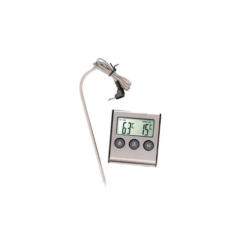 Dieses Multifunktions-Thermometer mit Sonde (von -25 °C bis +250 °C) eignet sich perfekt zum Messen der Temperatur Ihrer Karamellcreme, Zuckersirupe, aber auch aller anderen herzhaften oder süßen Speisen.