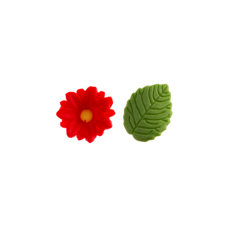 Blumen zum Dekorieren von Kuchen, Cupcakes und anderen Desserts. Diese kleinen Blumen und Blätter sind aus Zucker (gehärtete Zuckerpaste) geformt und behalten ihre Form.