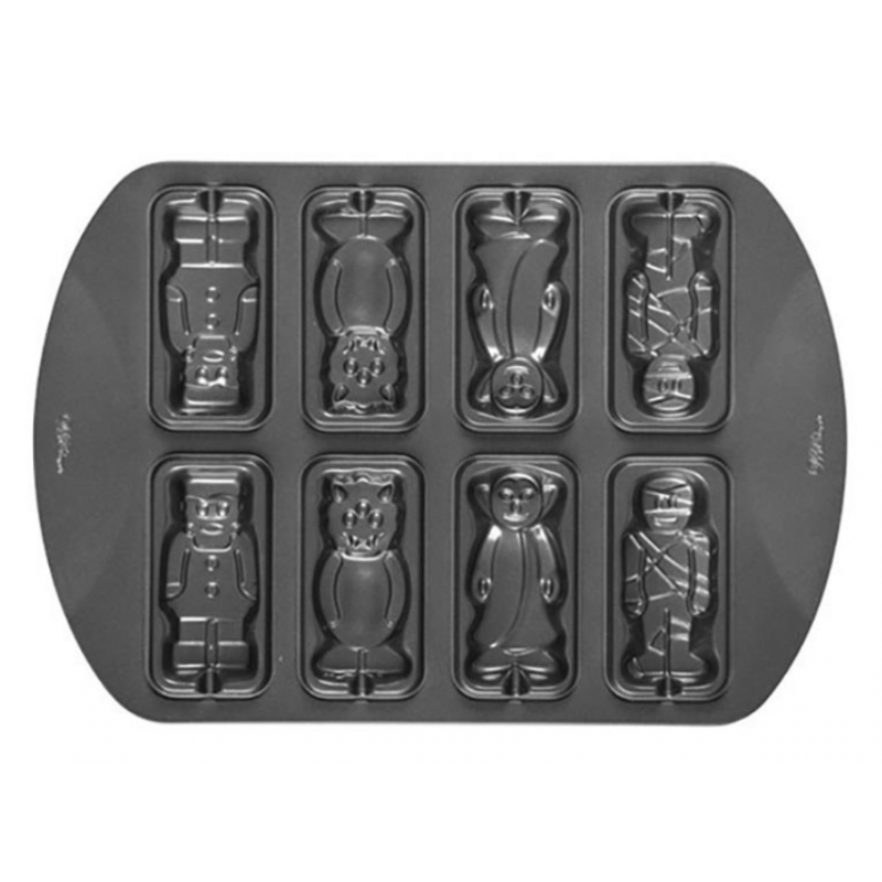 Die Monster Pop Cookie Pan misst 42 x 29cm mit 8 Hohlräumen von jeweils 11 x 5cm. Zu den Monsterformen gehören Dracula, Frankenstein, Mumie und ein Yeti. Ein Keks-Rezept und Dekorationsanweisungen sind enthalten.
