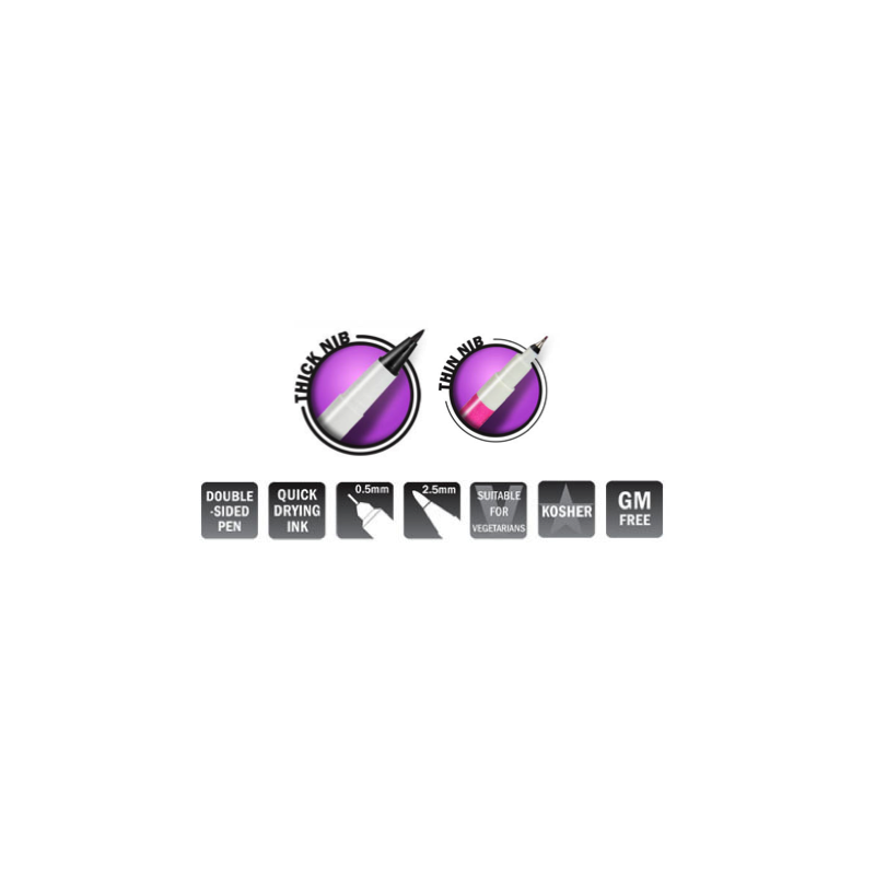 Die Entwicklung einer speziellen "essbaren Tinte" hat es uns ermöglicht einen Stift zu produzieren, der es möglich macht, dass die Tinte von einer Standard Spitze bis zu einer 0.2 mm breiten Spitze fliessen kann. Diese Spitze ist so fein, dass Sie sie sogar für den Gebrauch von Gesichtszügen auf Ihren Zuckermodellen verwenden können. Viel einfacher für Feinarbeiten zu gebrauchen als ein Pinsel!