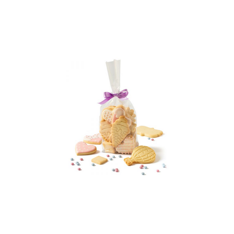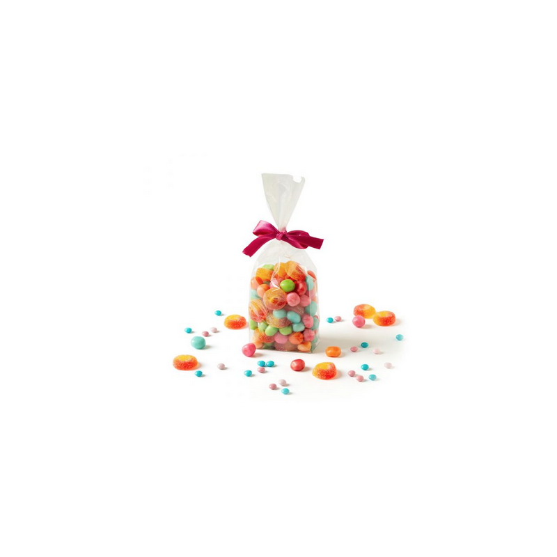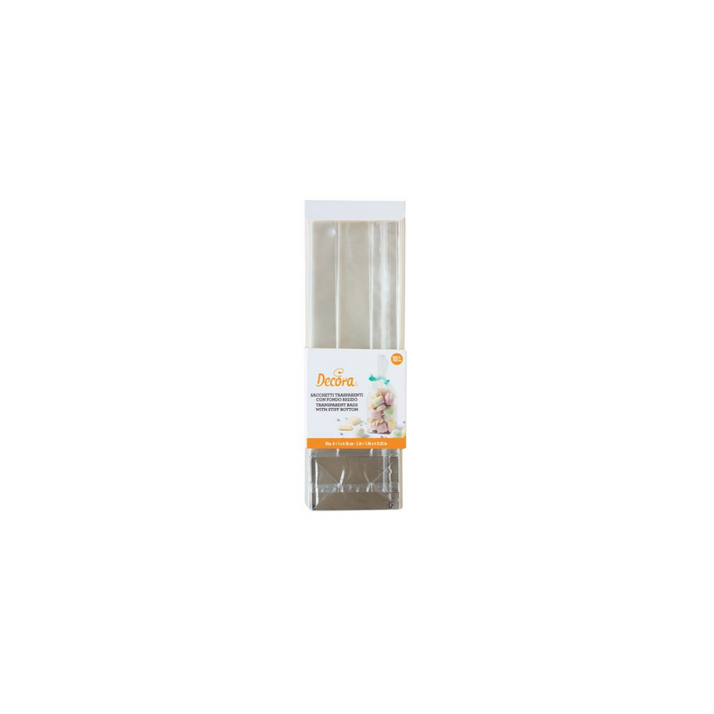 Lebensmittelbeutel aus Kunststoff mit praktischem festem Boden. Perfekt für Süßigkeiten, Bonbons, Kekse usw. Der bequeme feste Kartonboden sorgt dafür, dass die Tüte stabil steht.