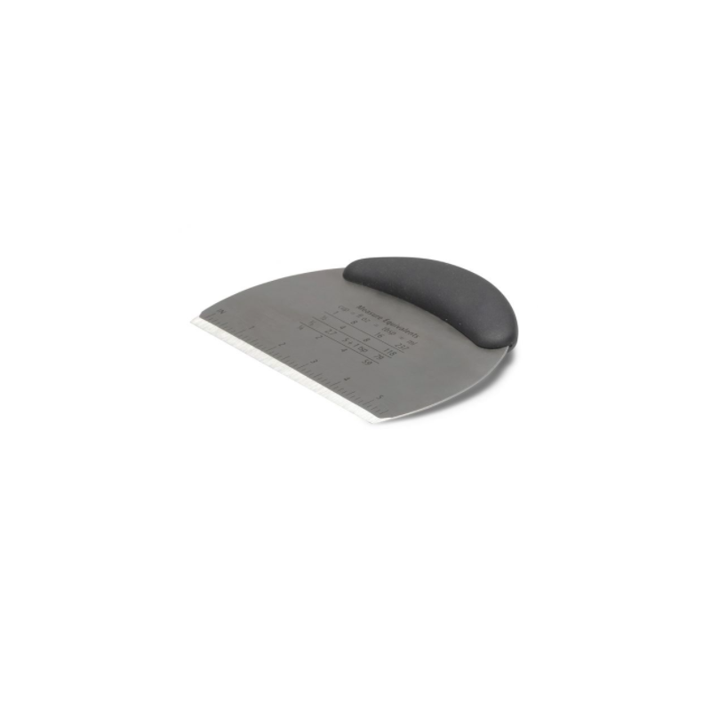 The Patisse dough scraper is made of stainless steel and has handy measures on it.