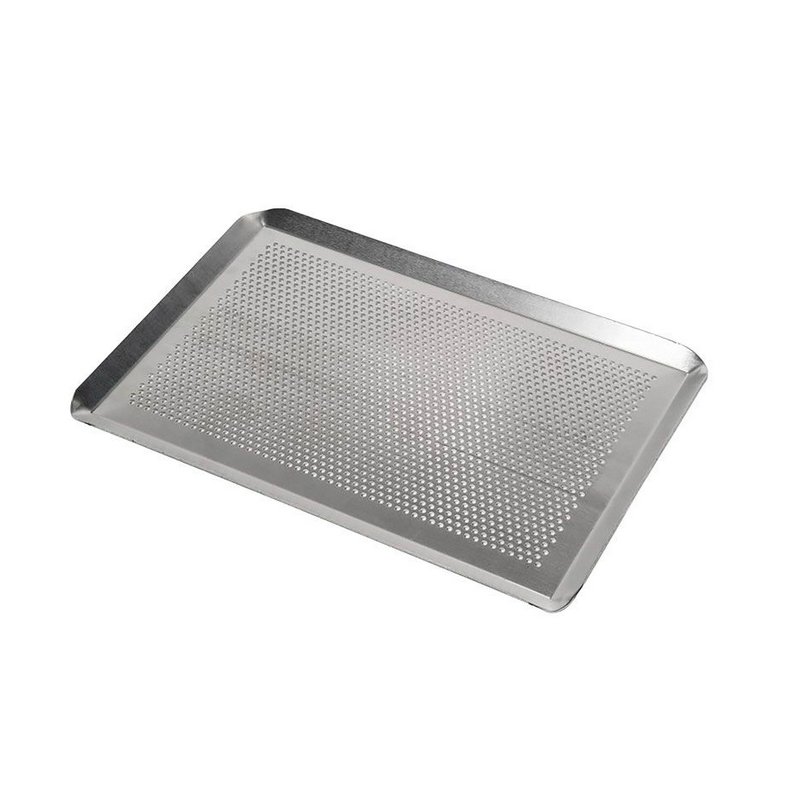 Rectangular perforated aluminium baking tray, perfect for baking.