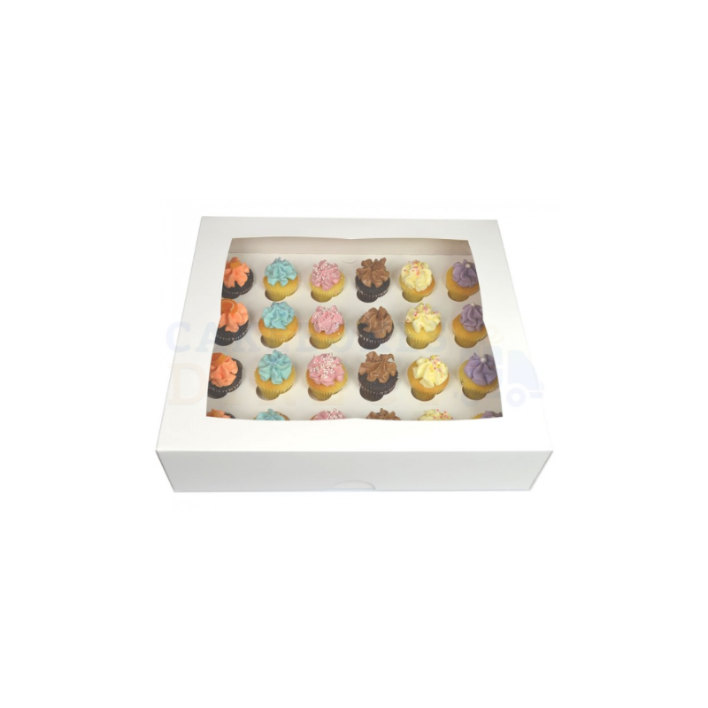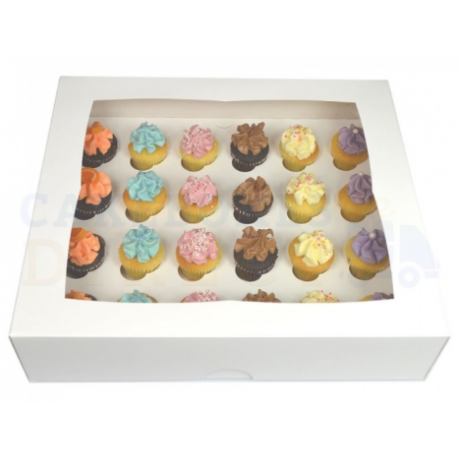 This window boxe is the perfect way to hold and display your cupcakes. Each box includes an insert with recessed space to hold standard cupcakes safely in place. Easy folding assembly, great for gifts and favors!