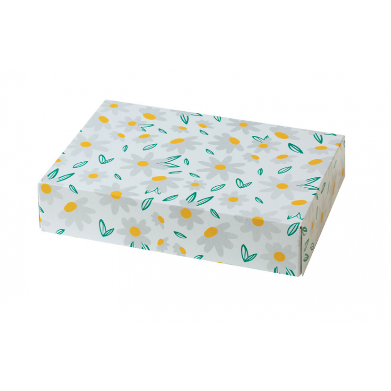 Present or carry your cookies and treats in this elegant food-grade cardboard box. Practical and stylish, perfect for gifting sweet assortments for any occasion. Sold flat, easy to assemble. Size: 23.5 x 16 x 5 cm.