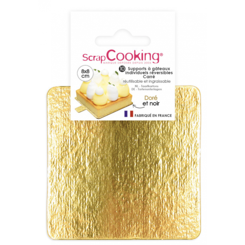 Set of 10 thin individual square supports to present your creations. Perfect to dress up your revisited tarts!