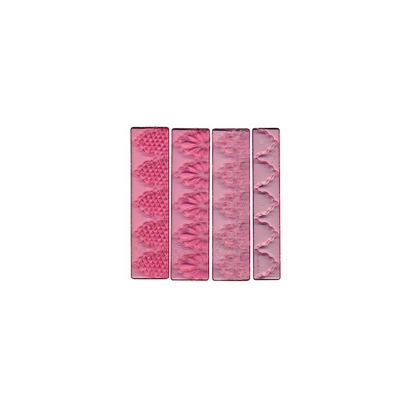 Set of 3 lace patterns and 1 cutter. For a traditional effect, for example to give the base of your cake a nice finish. English instructions included.