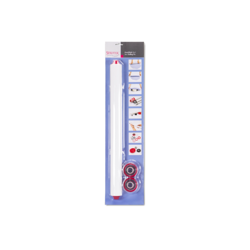 Ideal for both large and small surfaces. With silicon spacers for even rolling of various dough thicknesses.