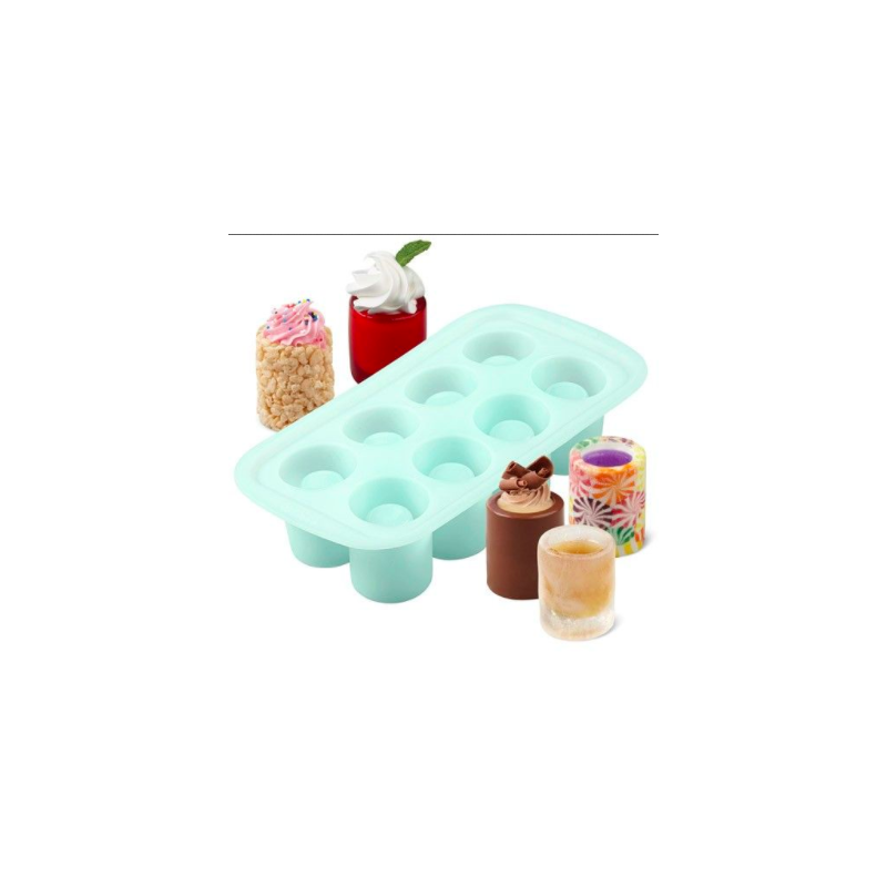 Cleanup is a breeze, because party guests can eat the containers. The Round Shot Glass Mold features one design and eight cavities. Dishwasher safe.