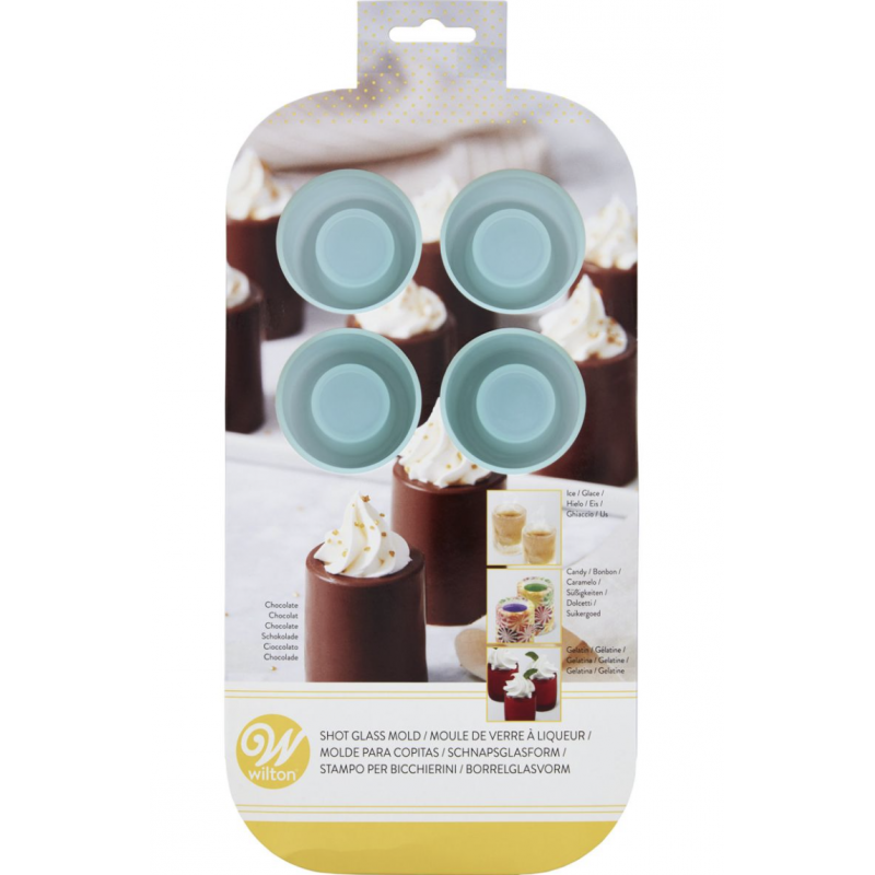 These perfectly shaped shot glasses are a unique way to pump up an ordinary drink. Always place mold on level baking sheet for easy positioning and removal from oven, refrigerator or freezer.