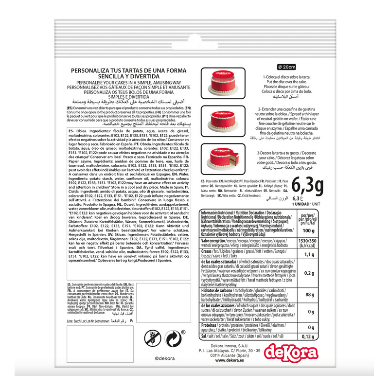 These 20 cm edible paper discs are perfect for decorating your cakes, tarts and desserts. Easy to use, they can be placed directly on the surface of your creations for an elegant visual effect. Made from edible paper, they're completely safe to eat and available in a variety of designs to suit any event. Ideal for birthdays, weddings and other celebrations, these discs add a personalised and professional finishing touch to your desserts.