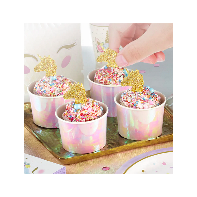 Add a sparkling finish to cupcakes or canapés with these double-sided glitter unicorn cake picks.