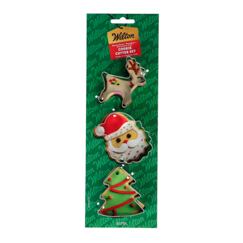 These Wilton cookie cutters offer a wide variety of festive shapes and sets, making them perfect for Christmas. They are ideal for baking holiday cookies, shaping fondant decorations, and more. With a selection of Christmas-themed figures and versatile nesting sets, Wilton cookie cutters add a festive touch to all your holiday creations. Use the Wilton cookie cutter nesting set featuring a Santa head, Reindeer and Christmas Tree to create cheerful treats that celebrate the season.
