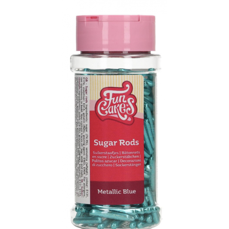 The decoration possibilities are endless with these 2 cm long metallic sugar rods. These blue rods from FunCakes are packed in handy sprinkle jar.