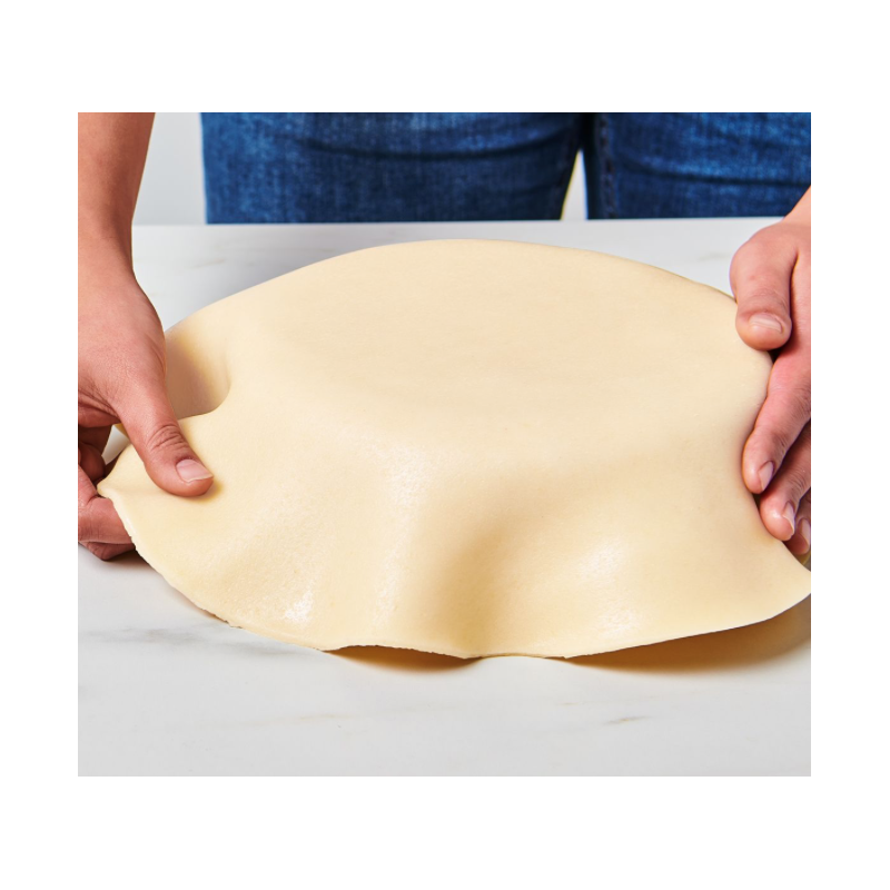 This Almond Sugar Paste has already been pre-rolled in the right thickness and is therefore ready to be placed over your cake directly out of the package. The disc has a cream white colour with visible almond pieces, giving your creations a natural and artisanal look. The Almond Sugar Paste Disc is also very convenient when cutting out shapes to decorate cookies. Enjoy the authentic almond flavour with the convenience of a ready-rolled sugar paste now!
