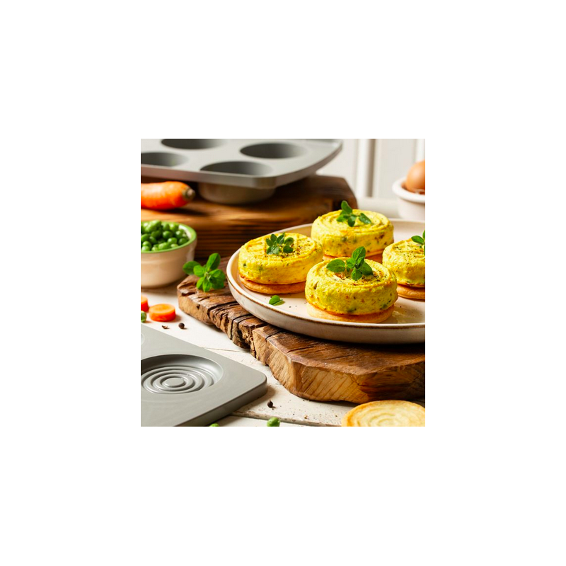 Set of 2 silicone moulds*, two different depths, ideal for sweet and savoury preparations. Made from 100% platinum silicone*, resistant to cooking and freezing.