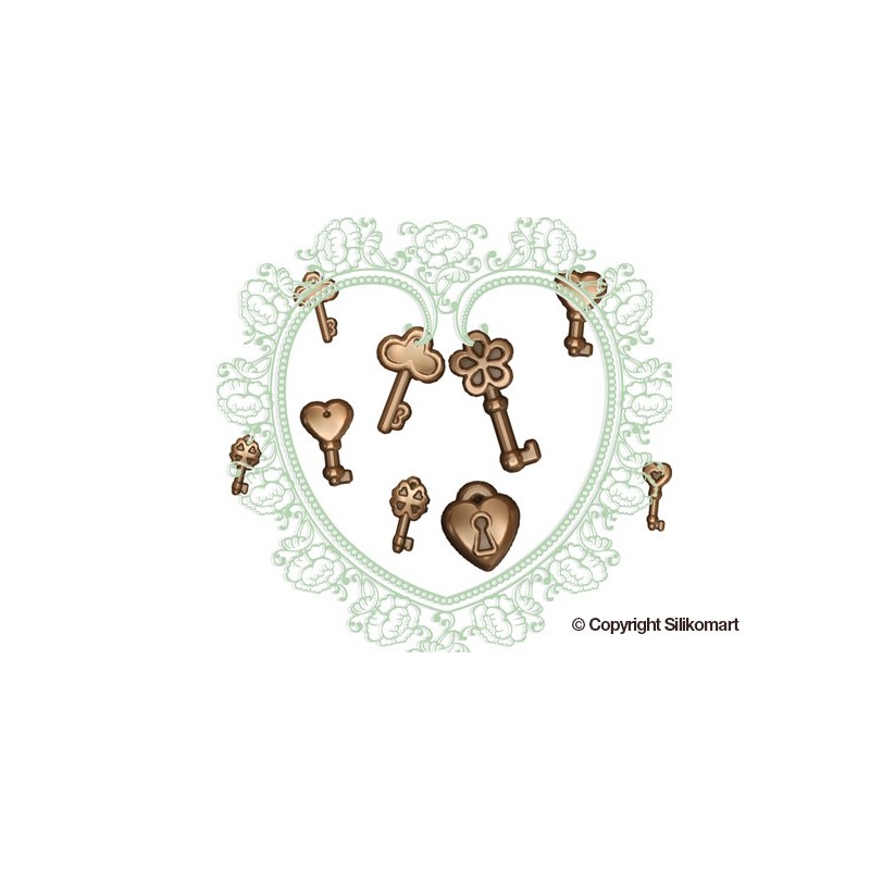 Choco Keys is the perfect mould to make detailed and accurate chocolate keys and two romantic padlocks. Making eight tasty chocolates will be easier than ever thanks to the recipe included in each confection: impeccable result is guaranteed!