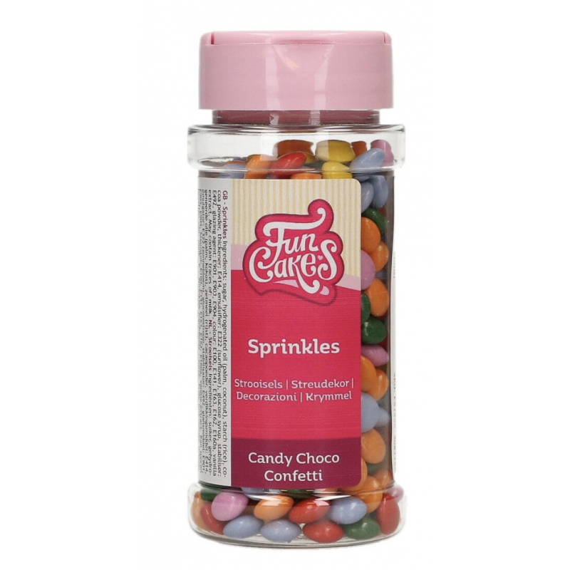 These FunCakes Candy Choco Confetti sprinkles are perfect to decorate your homemade treats such as cupcakes, donuts of cake pops. The Candy Choco Confettie sprinkles come in various coloured candy shells with a delicious chocolate filling inside. Sprinkles are an easy to way to make your treats look fancy in just seconds! Perfect for decorating treats. Cheerful colours. Packed in a convenient sprinkle jar.
