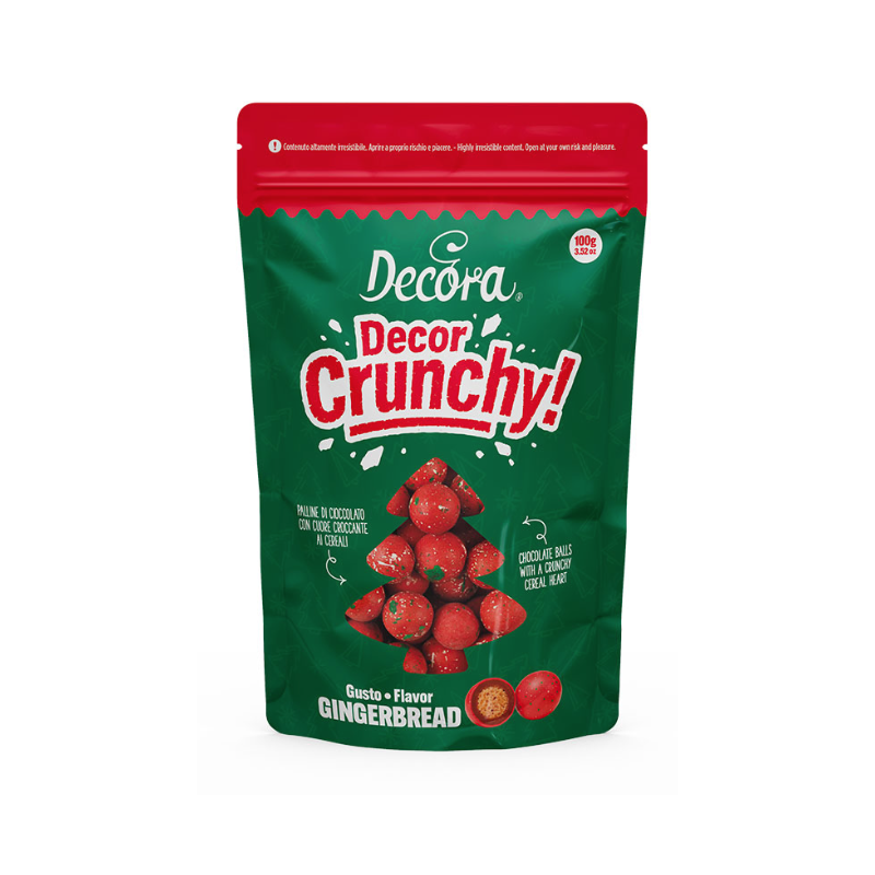 Chocolate balls with a crunchy cereal centre and gingerbread flavour. Red in colour. For decorating confectionery, ice cream and pastries. Delicious and easy to handle. Also ideal for a sweet table.