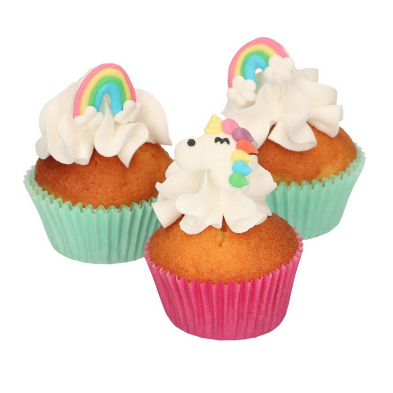 Decorate your unicorn cupcakes and other sweet treats with these cool sugar decorations from FunCakes! This pack contains finely detailed unicorns and rainbows.