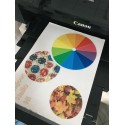- L'impression reproduit au mieux les couleurs de l'image visibles à l'écran, de légères différences peuvent apparaître à l'impression. Les grandes zones très foncées entre autres peuvent avoir des rendus étranges ou varier légèrement. Nous avons aussi remarqué que le rendu du jaune tend un peu sur le vert. Des contrastes avec zones très foncées et du blancs (p.e. échiquier blanc noir) peut générer des bavures.