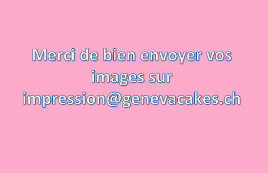 --> si vous avez besoin d'aide pour préparer l'image, nous pouvons le faire pour un supplément (5-10 CHF selon demande). Dans ce cas, envoyez les images de base au format Jpg + la demande à impression@genevacakes.ch & passez commande sur le site sans oublier d’ajouter le supplément pour le travail. Le travail ne se fait immédiatement en boutique, il faut compter un délai de 24h après paiement. Les impressions ne peuvent pas se commander plus que deux semaines avant utilisation de par leur durée de conservation.