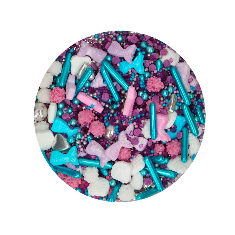Ce mélange de décors sucrés FunCakes est parfait pour donner une touche féérique à vos gâteaux et cupcakes. Il contient des perles brillantes, des confettis colorés et de jolies formes en sucre sur le thème de la mer et des sirènes.