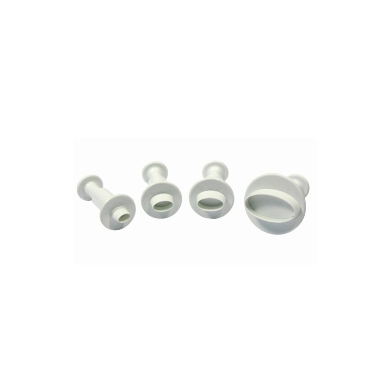 Jeu de 4 emporte-pièces de forme ovale. Le système d'extraction (à piston) facilite la coupe