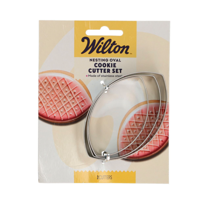 Wilton a un emporte-pièce pour chaque occasion! Avec cette série d'emporte-pièces, vous pouvez réaliser une série de la même forme en différentes tailles. Utilisez le Wilton Emporte-pièce Nesting Ovale set pour préparer des biscuits colorés pour toutes les occasions.