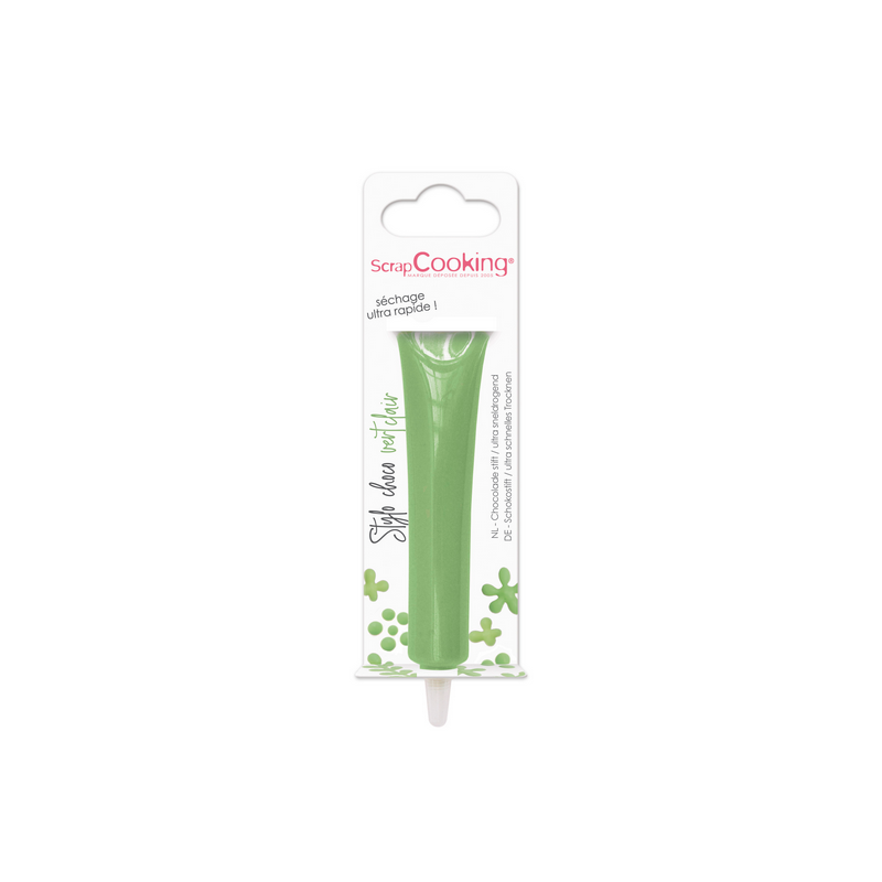 FORMAT PRATIQUE - Un stylo de 25g ultra pratique pour décorez et personnalisez rapidement vos desserts et biscuits ! Après chaque utilisation, vous pourrez remettre le bouchon et le conserver. Coloris vert clair et goût choco.
