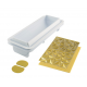 Le kit est composé par 2 supports/moules en plastique étudiés pour donner un effet arrondi aux créations et pour donner plus de stabilité en phase de préparation, et par deux tapis en silicone, un simple et un avec une texture diamants. Le kit contient une recette.