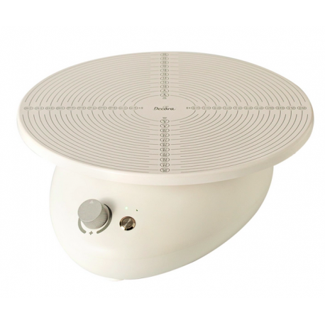 L'indispensable pâtissière électrique Decora est parfaite pour décorer les gâteaux et les portions individuelles, créer des décorations de précision et pour finir toute préparation sucrée ou salée. Il a été conçu pour simplifier et faciliter le travail de décoration car il vous permet d'avoir les deux mains libres pour vous consacrer exclusivement à la finition des détails. Il est composé d'un corps mécanique compact et léger, de forme ovale avec une bague circulaire sur laquelle tourne un disque en plastique avec une échelle graduée qui facilite le positionnement correct du plat à décorer.