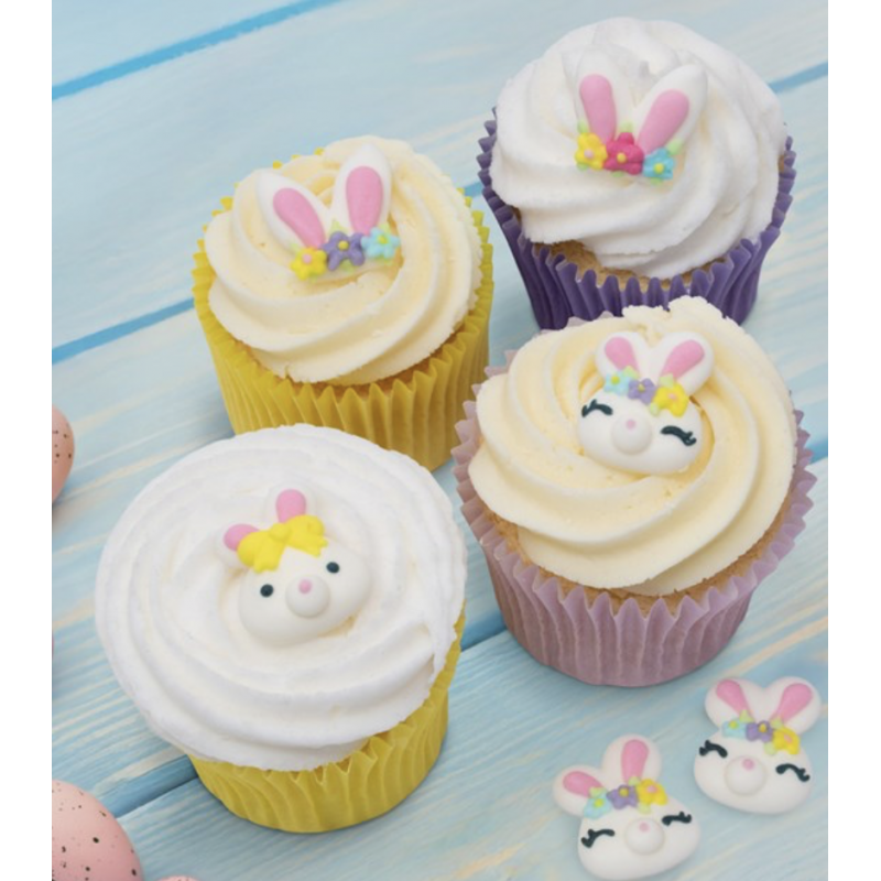 Ajoutez une touche printanière à vos pâtisseries avec ces décorations comestibles en forme de lapin. Le paquet contient quatre motifs : deux adorables visages de lapin et deux jolies oreilles.