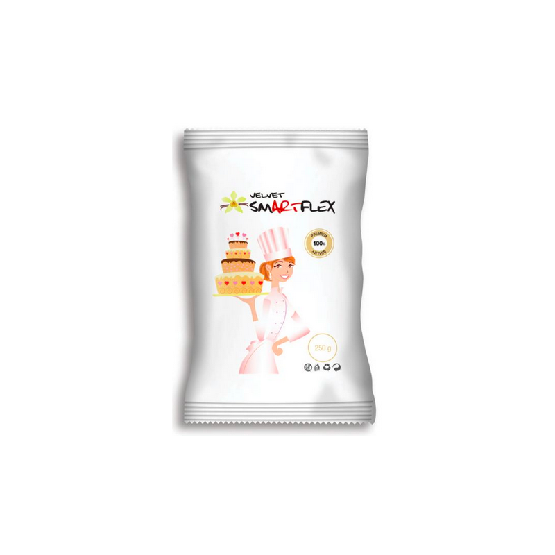 Recouvrez vos gâteaux et sculptez des figurines ou tout type de décorations grâce à cette pâte à sucre veloutée parfumée à la vanille, de SmartFlex. La pâte à sucre est très maniable, elle s’étale facilement en couches fines, sans craquelures ni déchirures, et ne colle pas. Sa texture veloutée est parfaitement homogène. Elle est adaptée à tous les climats, de la Méditerranée à la Scandinavie.
