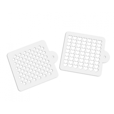Ce pochoir vous permet de réaliser simplement un joli motif ou des dessins sur du fondant, de la pâte d'amandes ou du glaçage royal durci. Déposez le pochoir sur le bord ou le dessus du gâteau, puis étalez délicatement à la spatule du glaçage royal légèrement dilué (d'une autre couleur) sur le pochoir pour remplir les espaces vides. Retirez ensuite prudemment le pochoir et répétez l'opération, si nécessaire. Vous pouvez également utiliser du colorant en poudre.